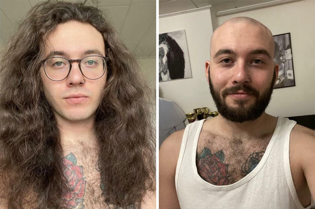 Homens mostram fotos de antes e depois de cortarem o cabel o