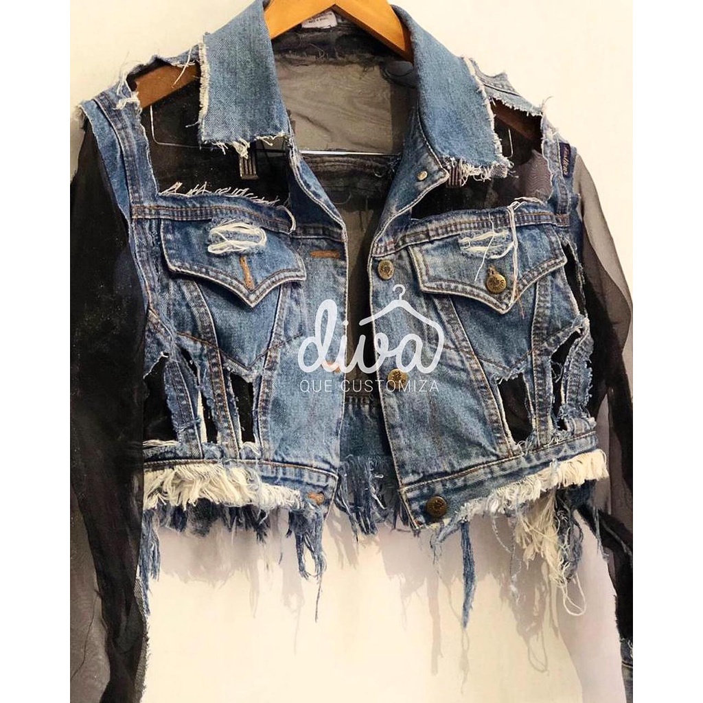 JAQUETA JEANS COM TULE DEGRANT Moda Roupas Costomizar roupas