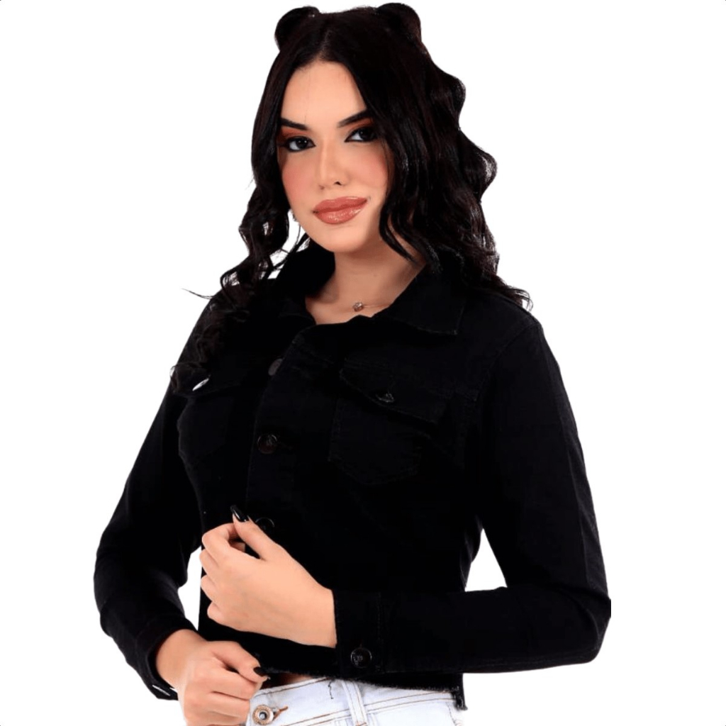 Jaqueta Jeans Feminina Preta Jaquetinha Curta Com Lycra Premium