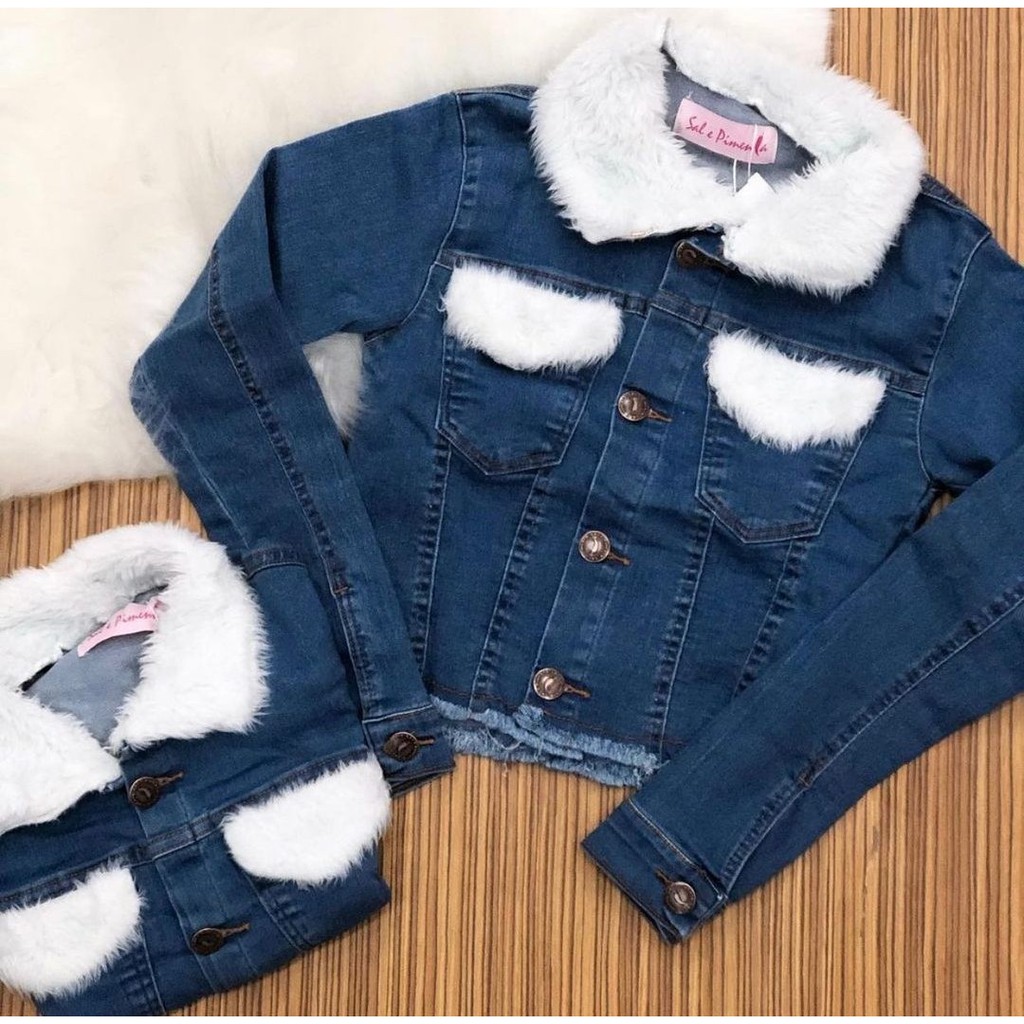 Dondoca Store Jaqueta Jeans Pelinho Sal e Pimenta P M