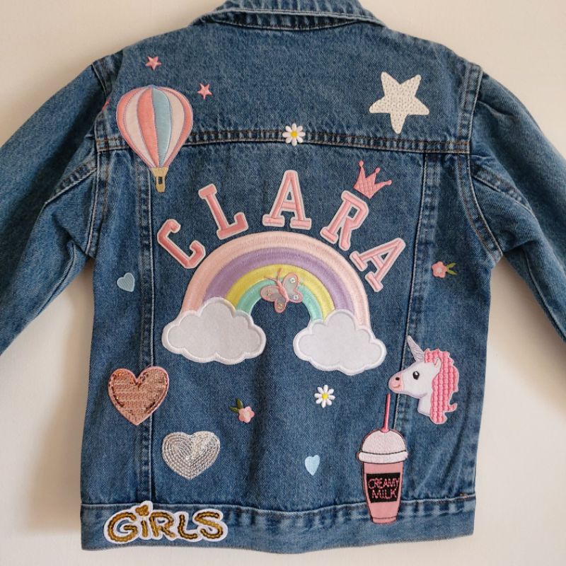 Jaqueta personalizada jeans com nome da crian a moda infantil