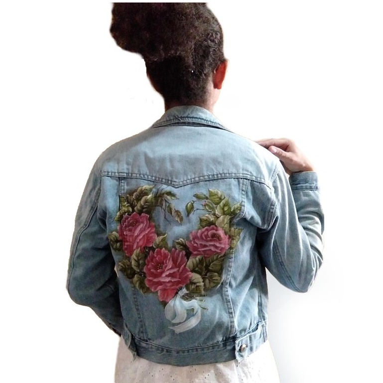 Jaqueta jeans com clearance rosas vermelhas, Jaqueta Jeans Rosa Barra Desfiada Inovar Floripa Jaqueta clearance