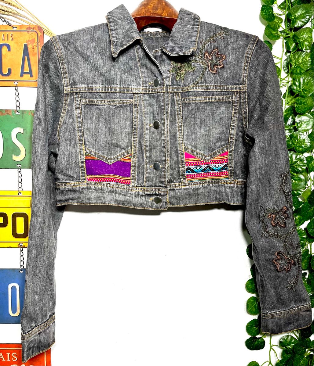 Jaqueta Jeans Design Peruano C Bordados Casaco Feminino N o