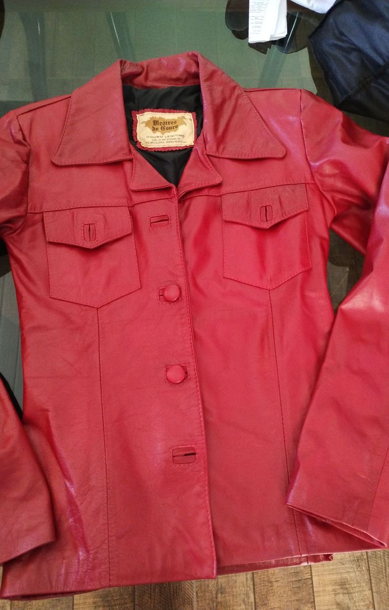 Jaqueta de Couro Leg timo Vermelha de Botao Casaco Feminino