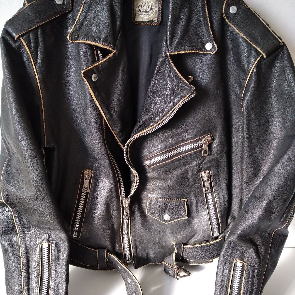 Jaqueta Couro Motociclista Casaco Masculino Sac E Sac Usado