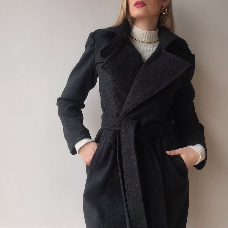 Casaco de lã clearance batido feminino preto, Casaco L Batida Longo Basiq Preto Oqvestir clearance