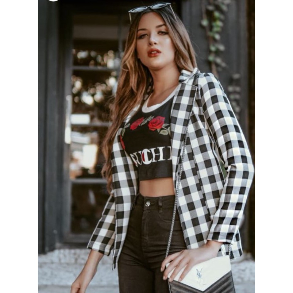 Casaco xadrez preto clearance e branco feminino, Blazer Xadrez Preto e Branco Casaco Feminino Cortelle Usado clearance