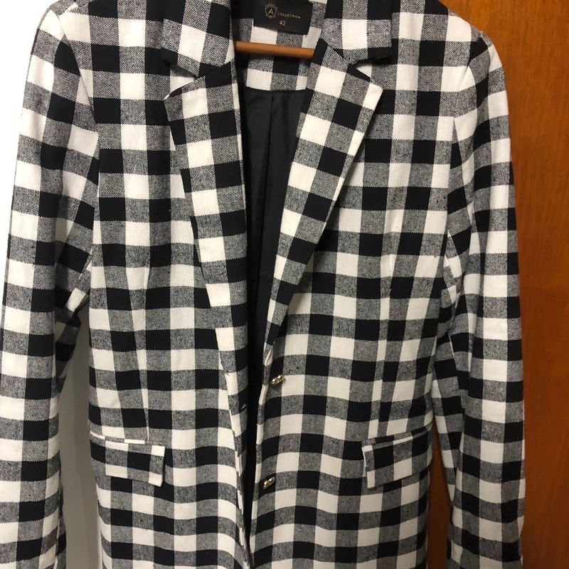 Blazer Xadrez Preto e Branco Casaco Feminino Cortelle Usado