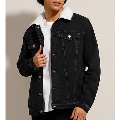 Jaqueta Jeans Gola Com Pelo L Masculina Preta slim