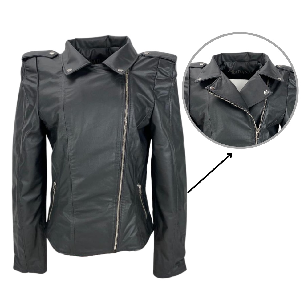 Jaqueta Feminina Badana Couro Leg timo Preto Lisa Perfecto Z per