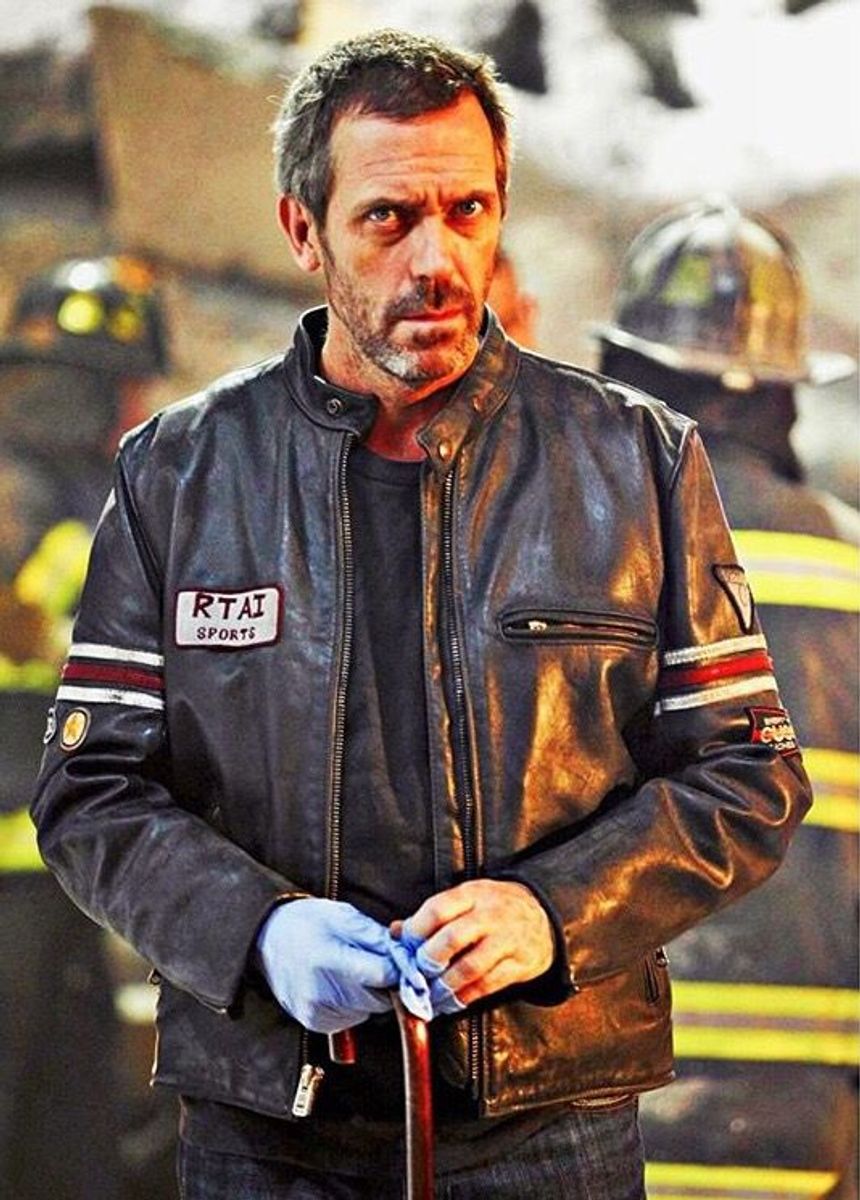 Dr. Gregory House Hugh Laurie Biker Leather Jacket Leather