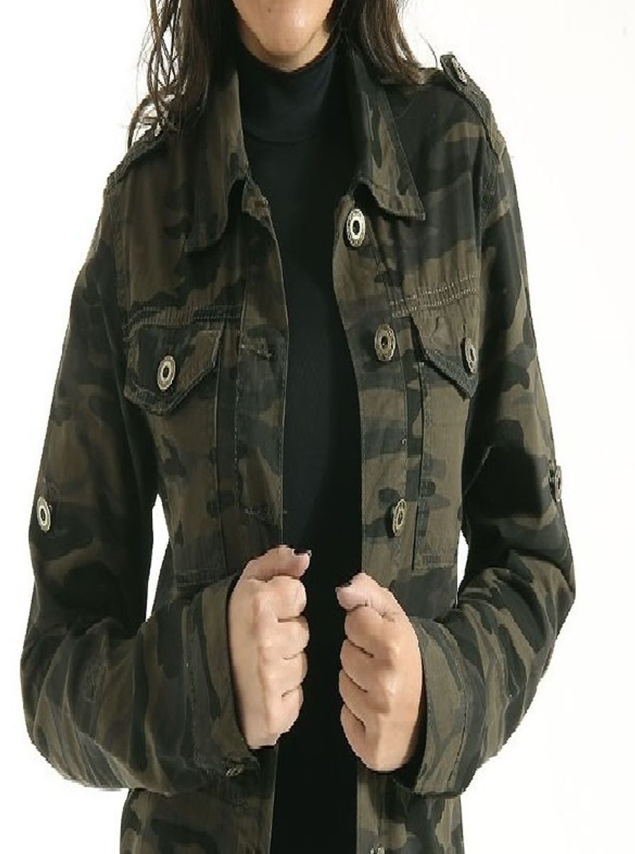 Jaqueta Jeans Camuflada Feminina Verde Militar Ex rcito