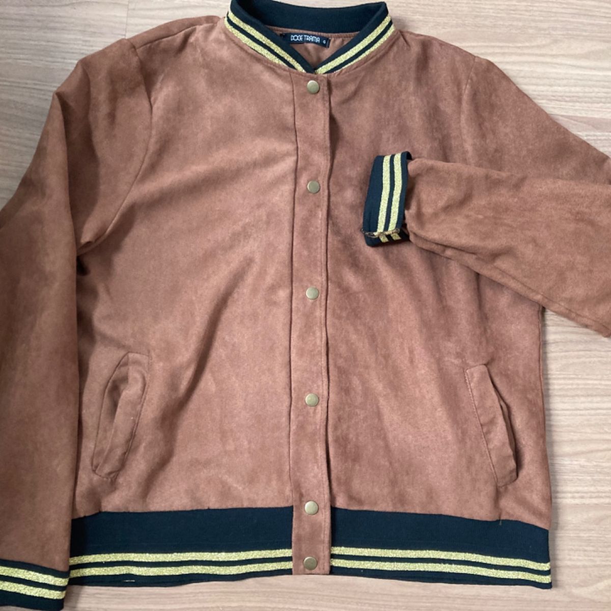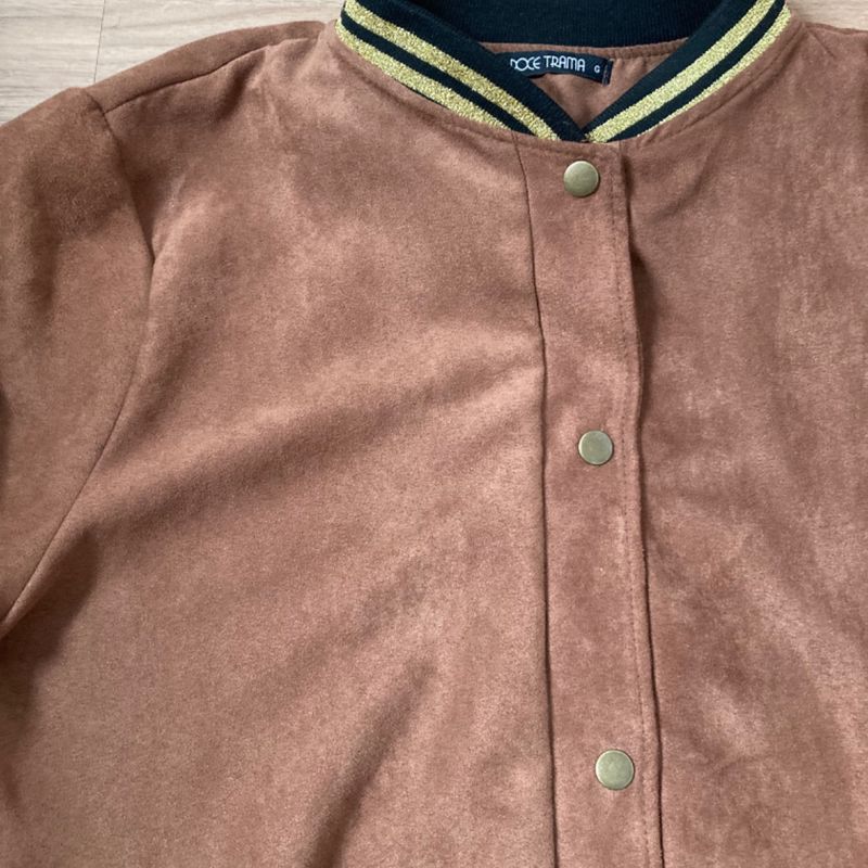 Doce Trama Jaqueta em Suede Marrom Caf Doce Trama Jaqueta