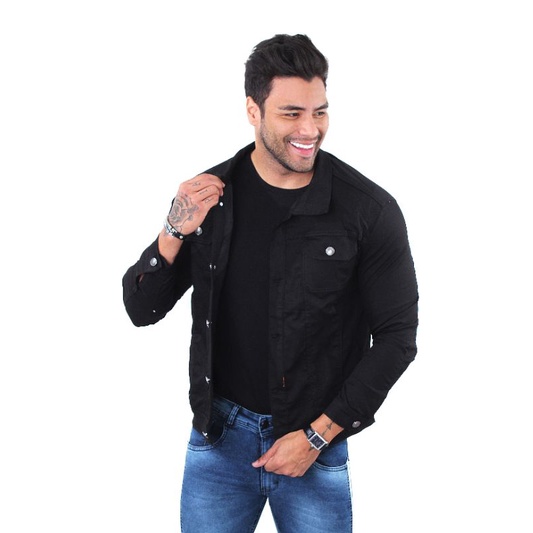 Jaqueta Masculina Preta Lisa B sica Sarja