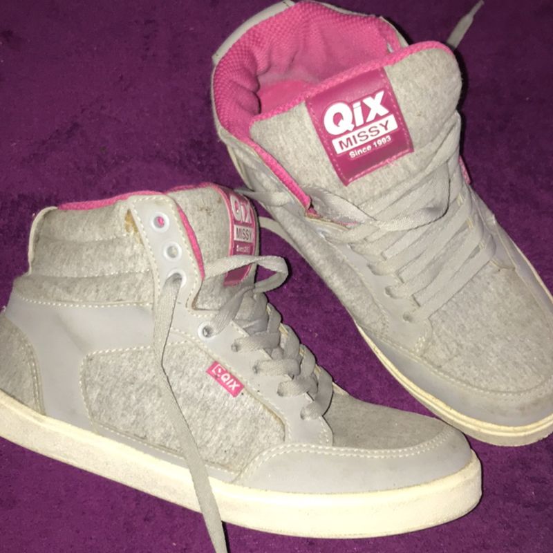 T nis Cano Alto Qix Tamanho 36 Cinza com Detalhes Rosa T nis Feminino Qix Usado 46486173 enjoei