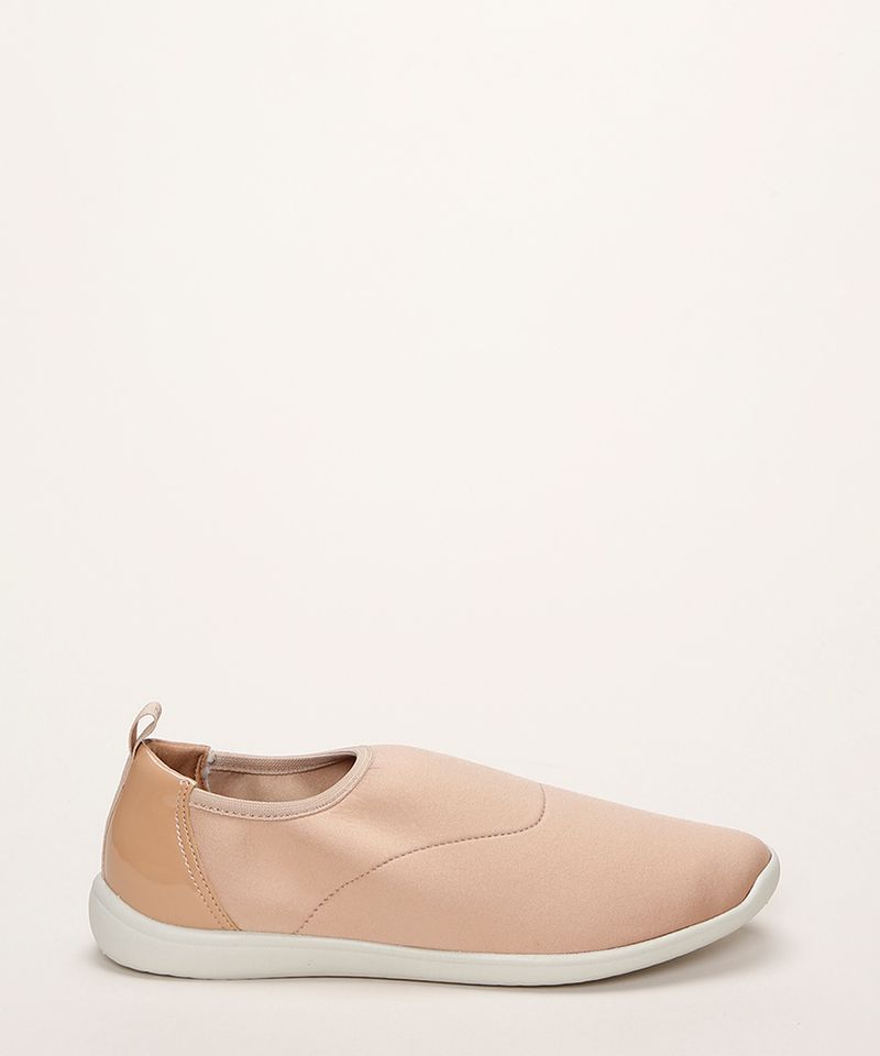 Tenis clearance bege verniz, t nis knit feminino malu super comfort com recorte em verniz bege clearance