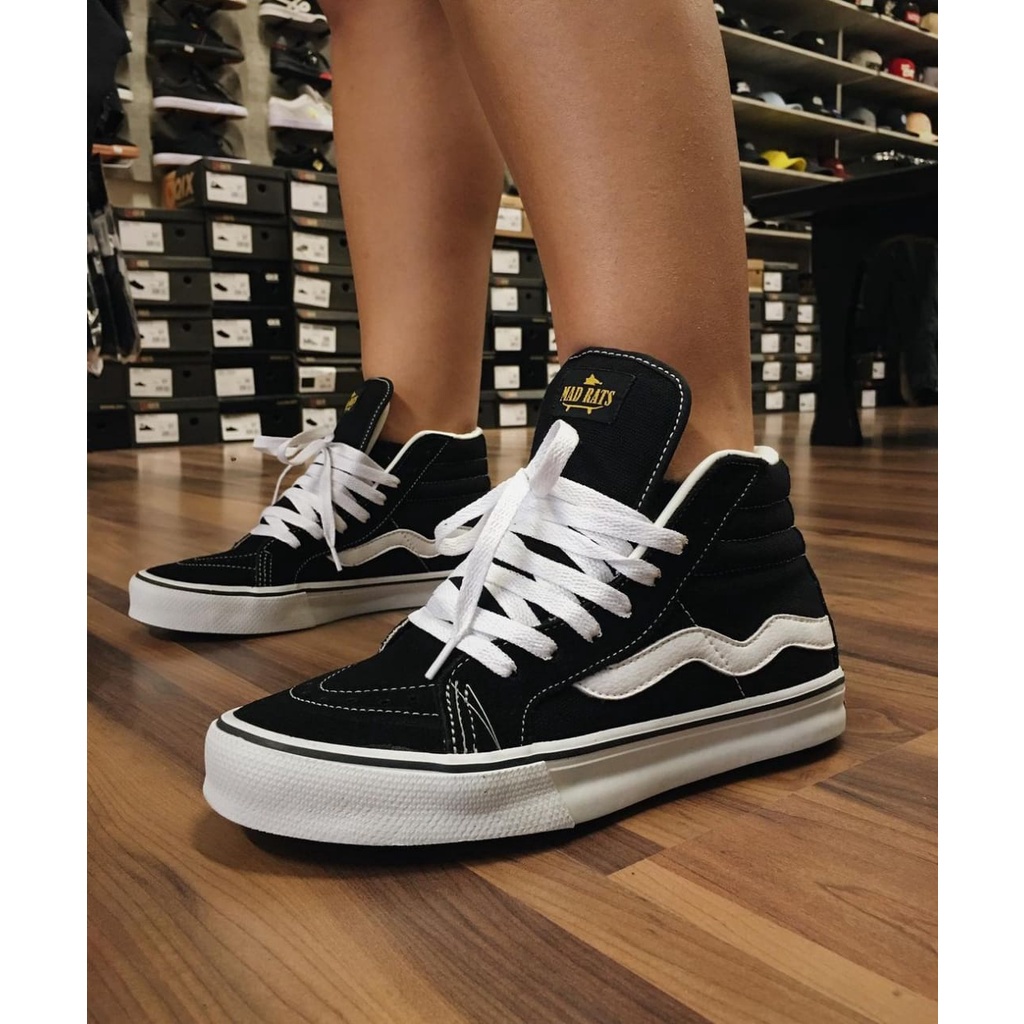 T nis de Skate Cano Alto Old School Preto Preto Mad Rats