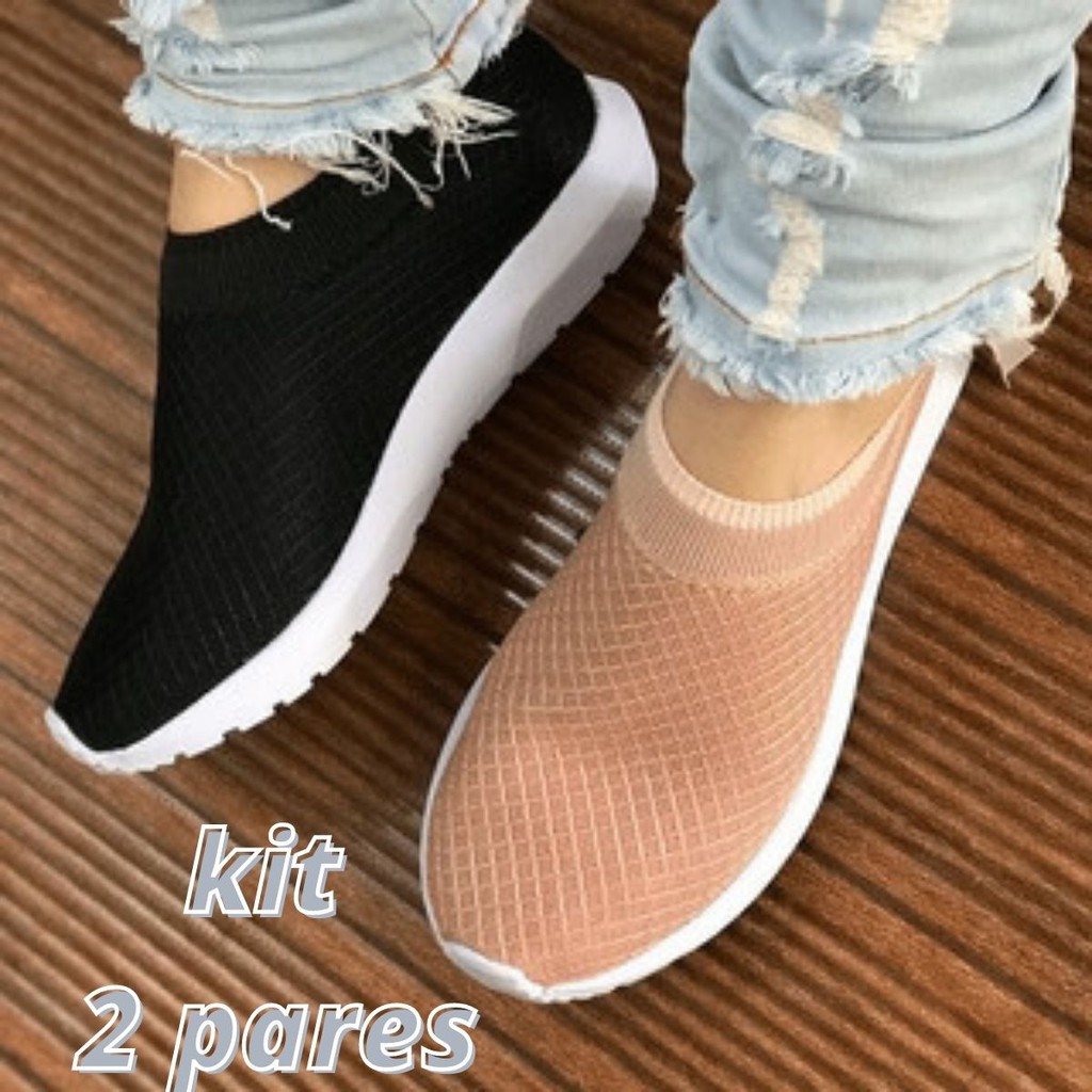 kit 2 T nis Meia Feminino Leve Promo o Preto Nude Slip on Corrida Caminhada
