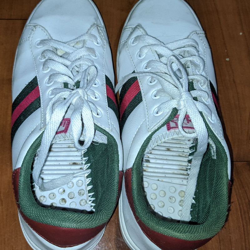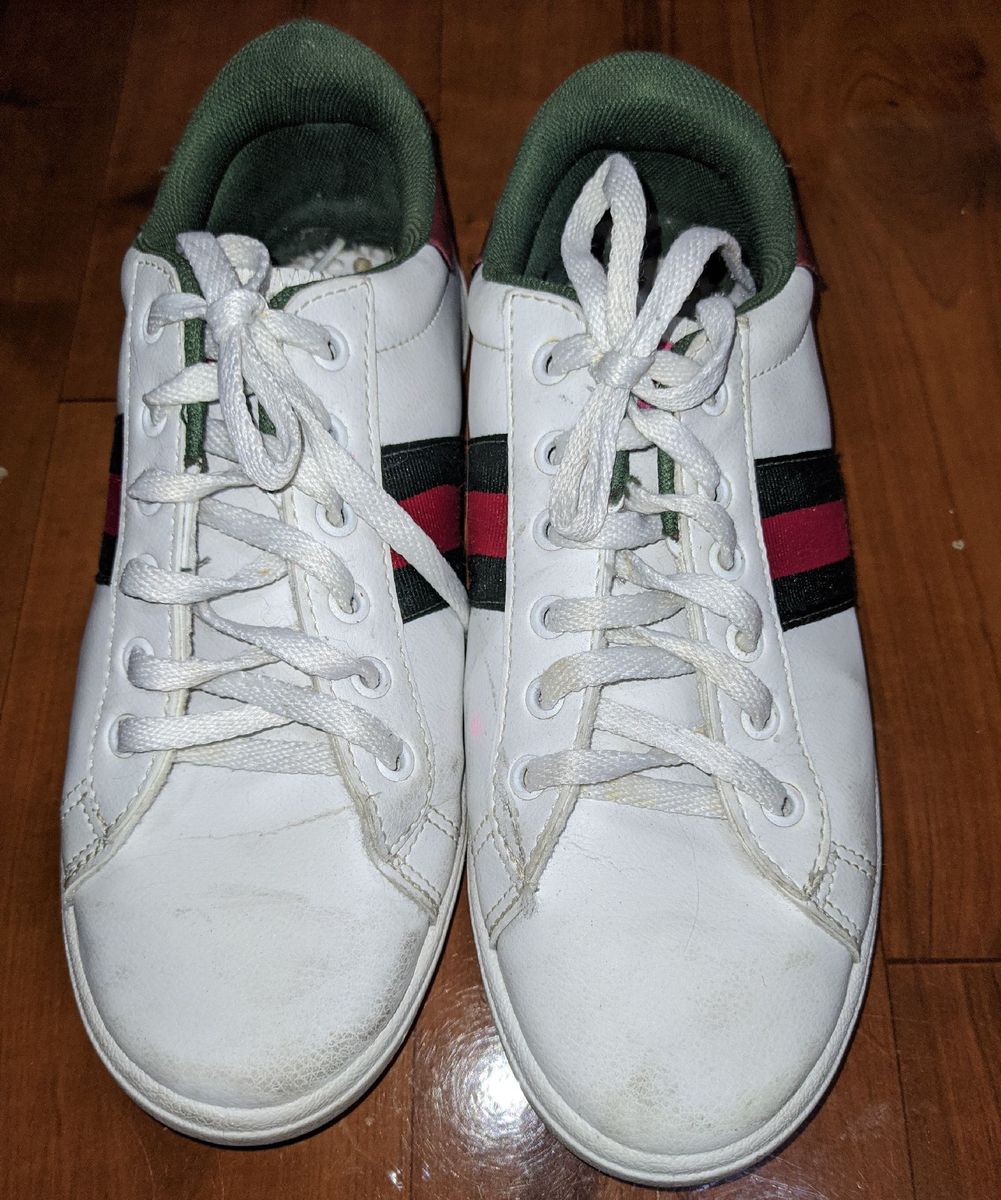 T nis Branco com Detalhes Verde e Vermelho T nis Feminino Usado