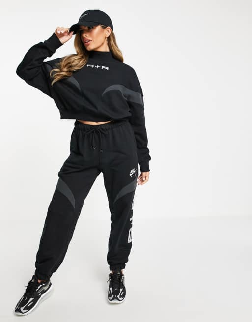 Nike Air cropped fleece sweatshirt with mock neck in black