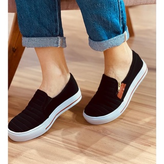 T nis Sapatenis Sapatilha Casual Feminina Slip On Ziper Lateral
