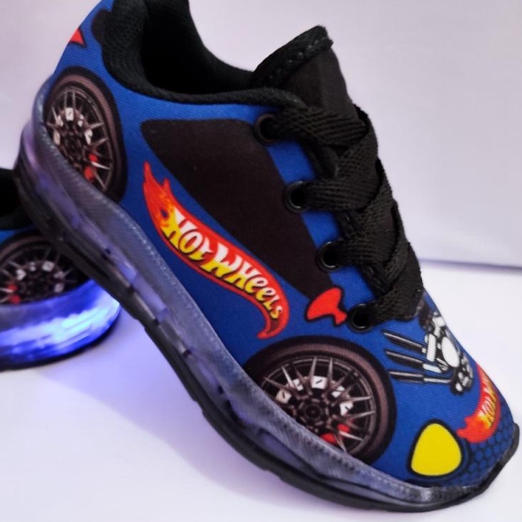 T nis com luzinha carros relampago hot wheels infantil personagens de cadar o cor azul de carrinhos led