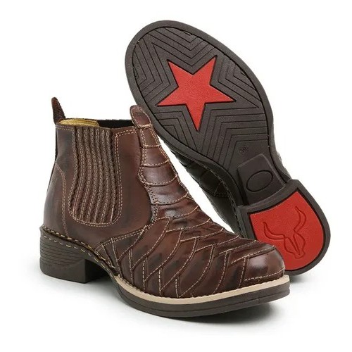 Bota Feminina Country Texana Escama de Peixe Couro Bovino Legitimo