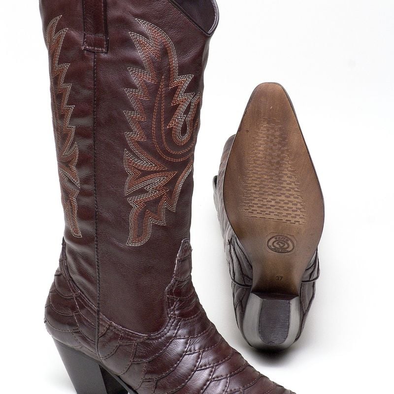Texana Escamada Feminina Em Couro Leg timo Cor F ssil Caf