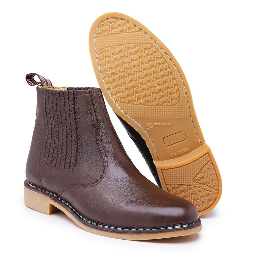 Botina Western Masculina em Couro Legitimo Havana Bico Quadrado e