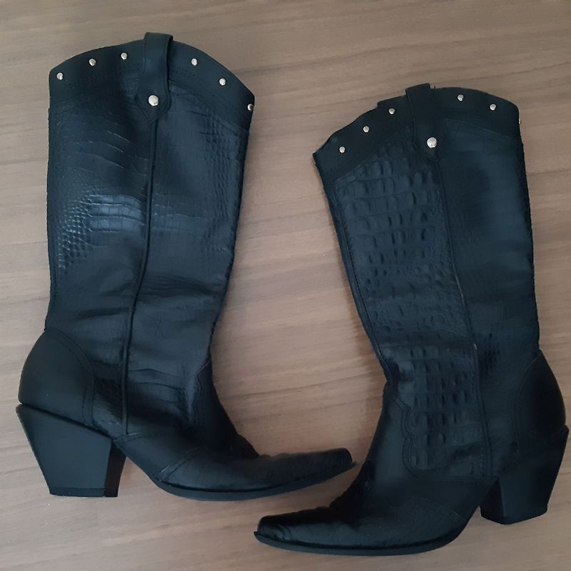Bota Western Preta Couro de Cobra Cano Longo Tamanho 37 Bota Feminina Via Marte Nunca Usado 70931993 enjoei
