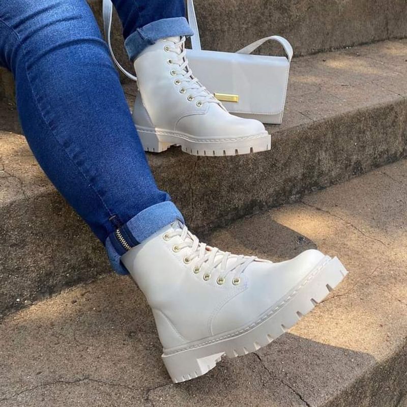 Bota Coturno Feminino Off White Cano Baixo Salto Tratorado