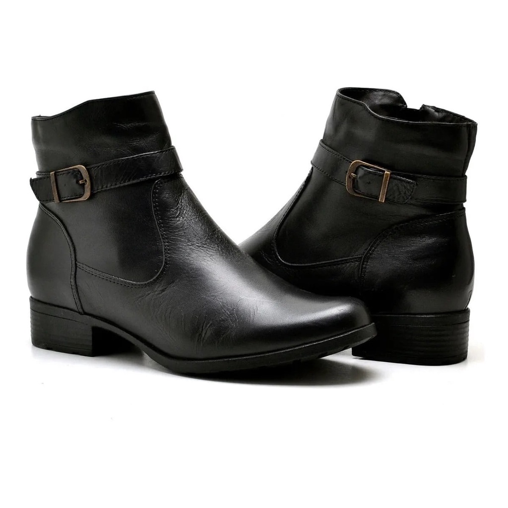Bota Feminina Coturno Couro Cano Curto Salto Baixo Conforto