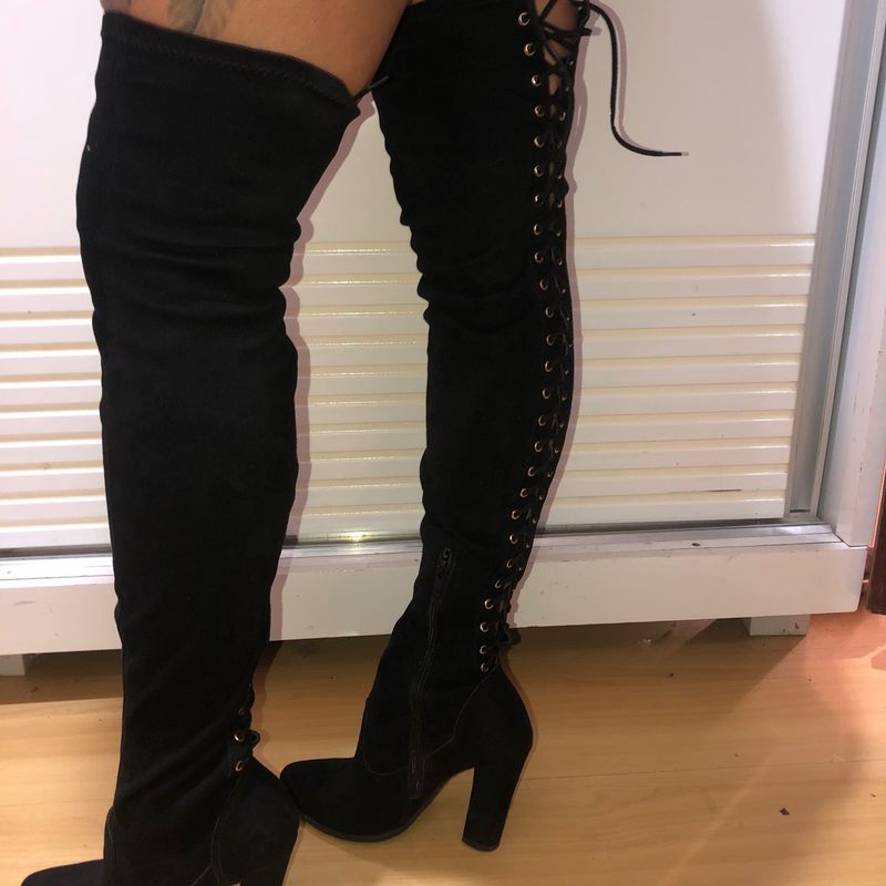 Bota Cano Longo Over The Knee Veludo Salto Grosso em Promo o na