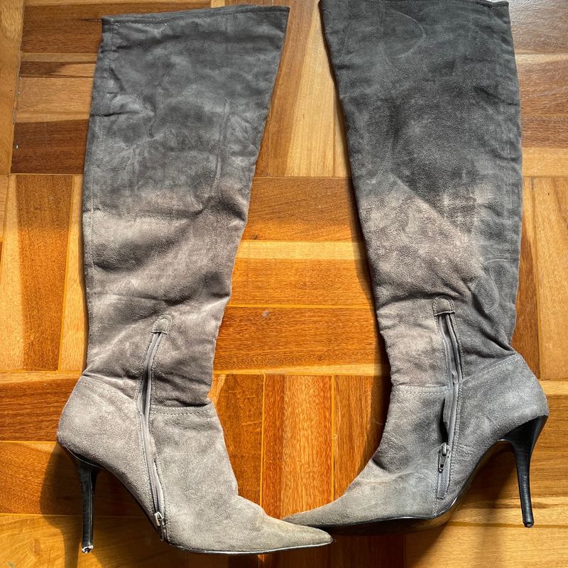 Bota cano alto clearance acima do joelho, Bota Cano Alto Acima do Joelho em Couro Efeito Camur a clearance