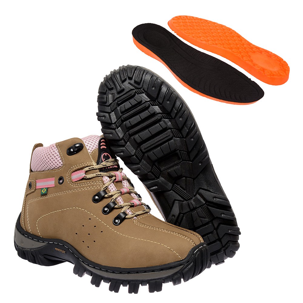 Coturno adventure feminino em couro clearance nobuck rato com detalhe rosa