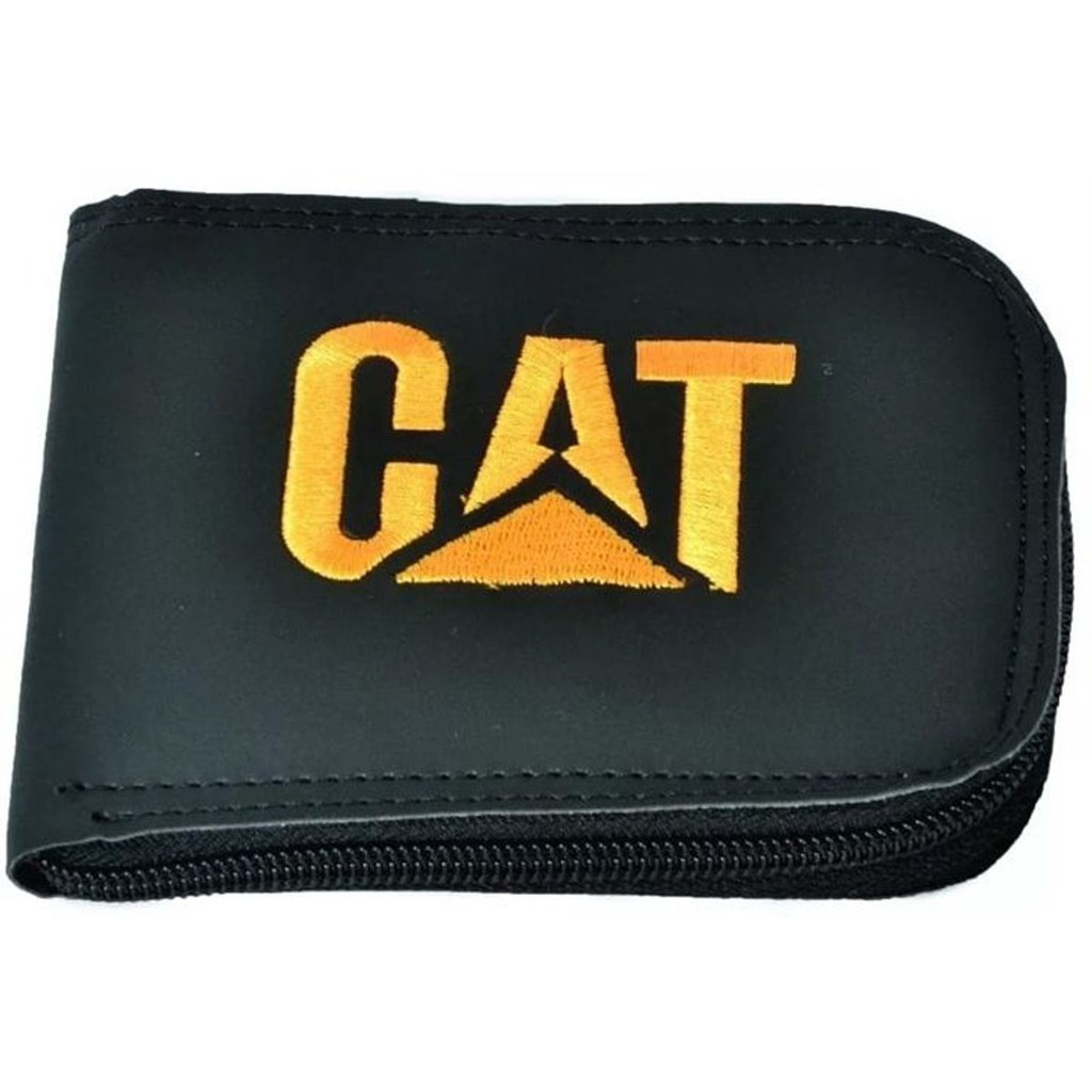 Carteira Masculina Cat Com Ziper Confeccionado Em Couro