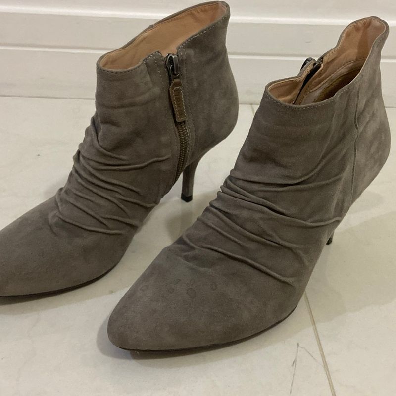 Bota camurça cano clearance curto salto fino, Bota Cinza de Camur a Cano Curto e Salto Fino Bota Feminina clearance