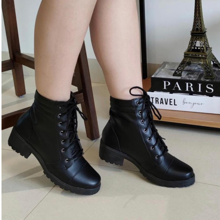 Bota Coturno Salto Grosso Moda Feminino Tratorado Blogueira