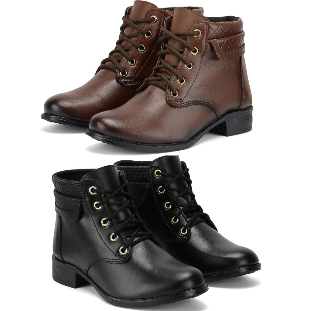 Kit 2 Bota Feminina Cano Baixo Casual Salto Curto Para o Inverno