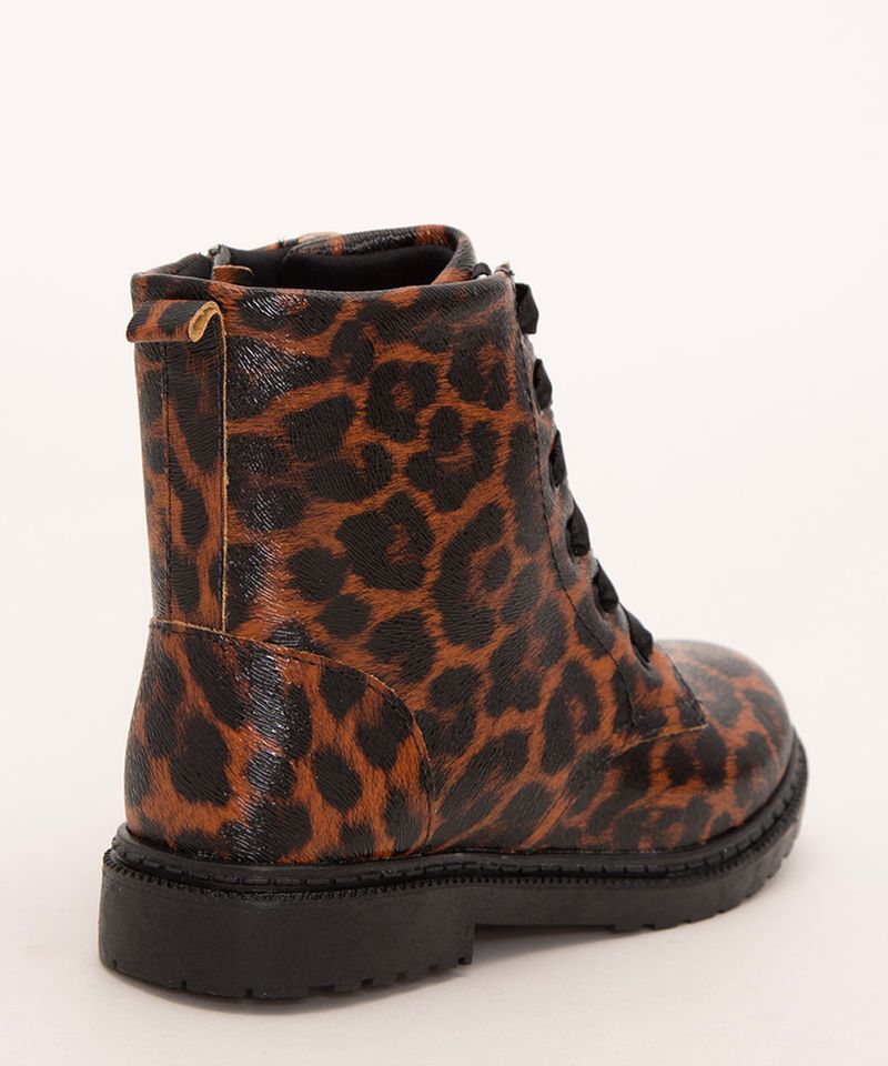 C A Bota Coturno Feminina Cano Baixo Estampada Animal Print de