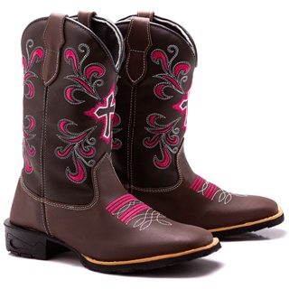 Bota Texana Feminina Country Bico Quadrado Cruz Azul Rodeio