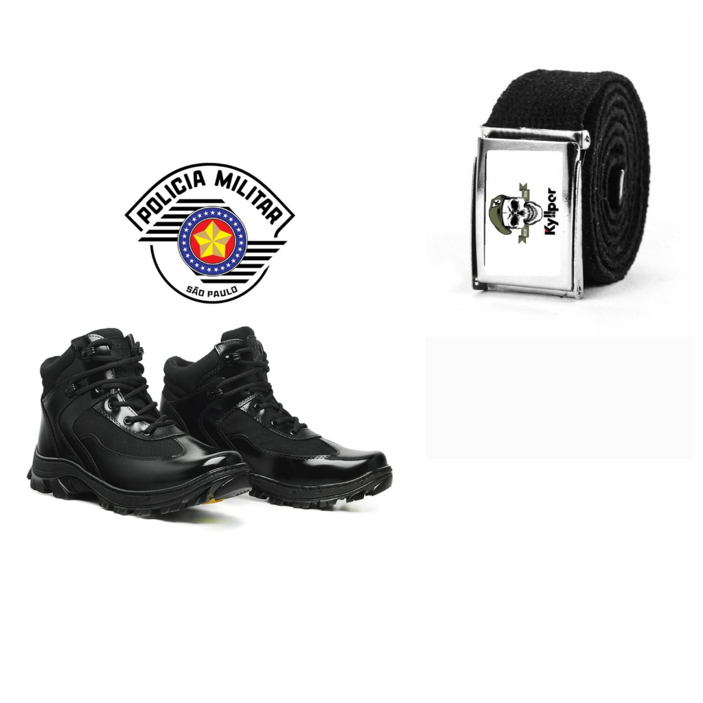 Bota Coturno Policia Militar S o Paulo Pm Sp Couro Barato Cinto