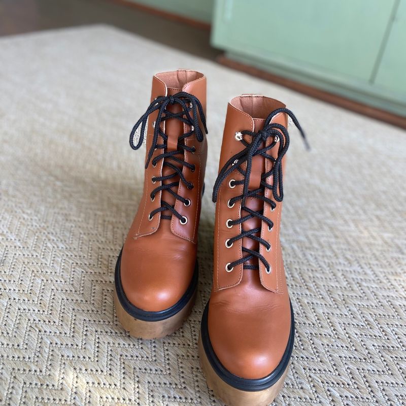 Bota Coturno Tratorara Caramelo Satinato Bota Feminina
