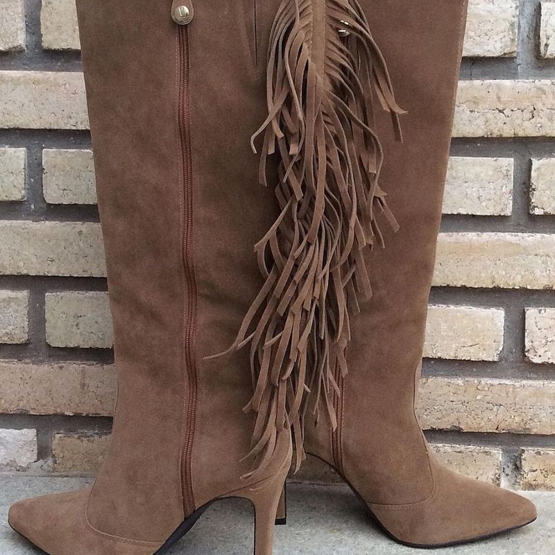 Bota Cano Alto Camur a Franjas Caramelo Bota Feminina Vizzano