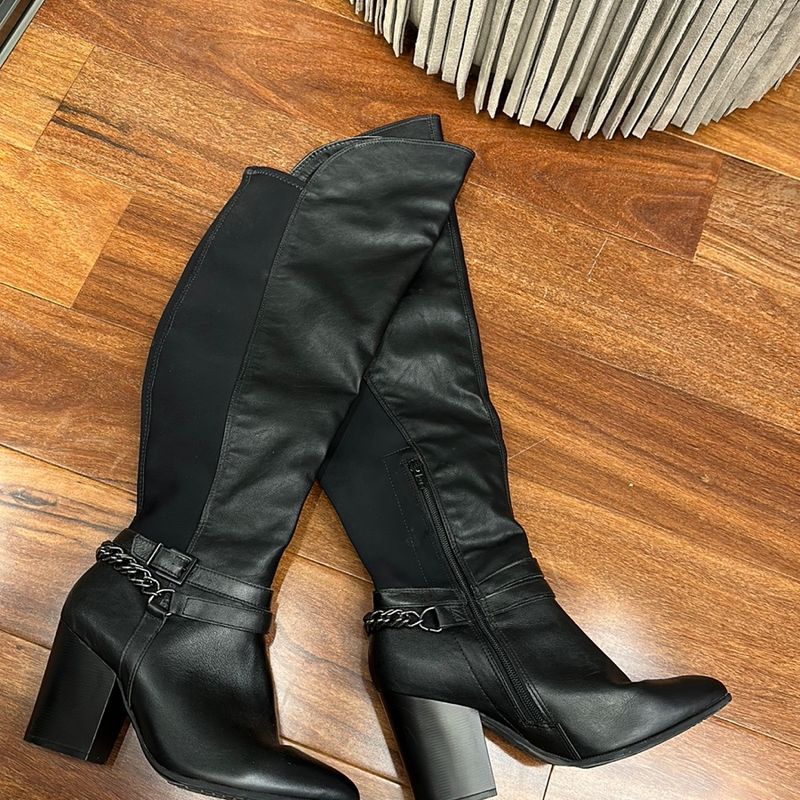 Bota Over The Knee Ramarim Preta com Corrente e Salto Bico Fino Bota Feminina Ramarim Usado 90390683 enjoei