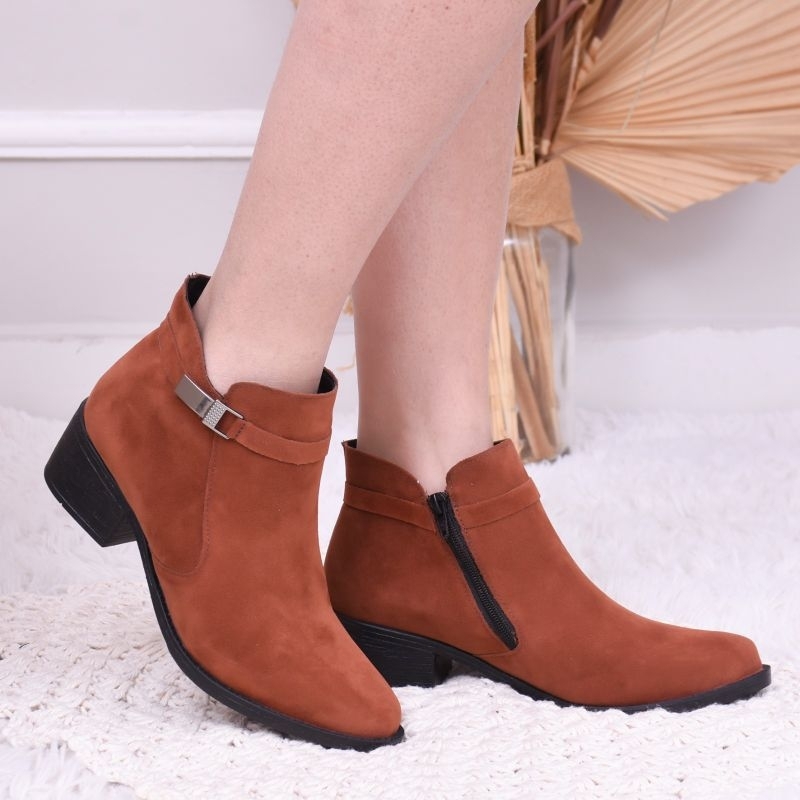 Bota Feminina Cano Curto Salto Baixo Marrom Marrom