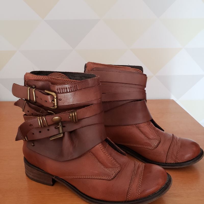Bota Cano Curto em Couro com Fivelas Caramelo Santa Lolla 35 Bota Feminina Santa Lolla Usado 89348443 enjoei