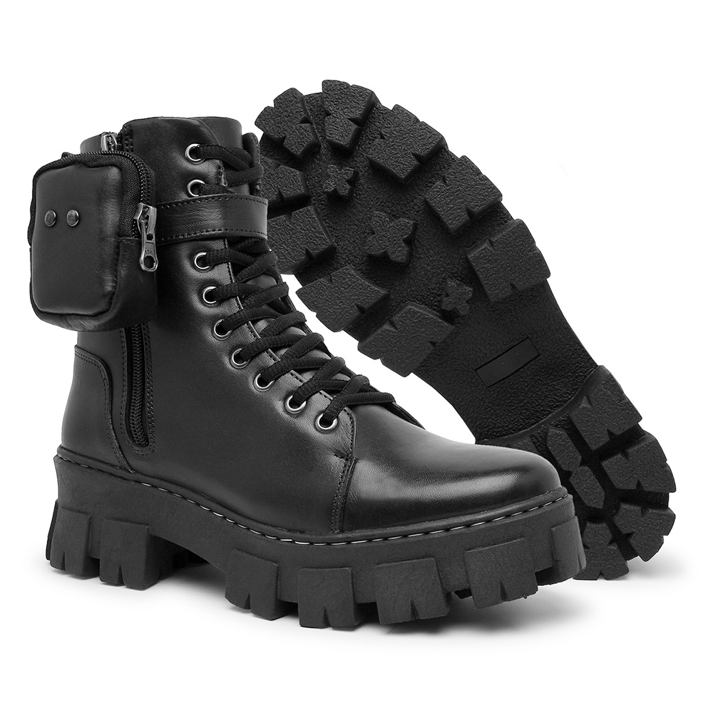 Coturno estilo militar clearance feminino, Bota Coturno Feminino Estilo Militar Com Bag Bolsinha Cano Couro clearance