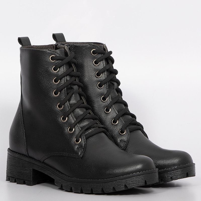 Coturno Couro Preto Salto Baixo Constance Cal ados