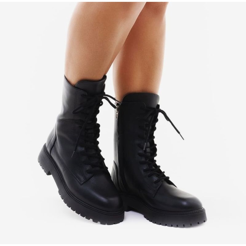 Bota coturno lia clearance line, Coturno Lia Line Preto Couro Salto Meia Pata Tratorada Urbanna clearance